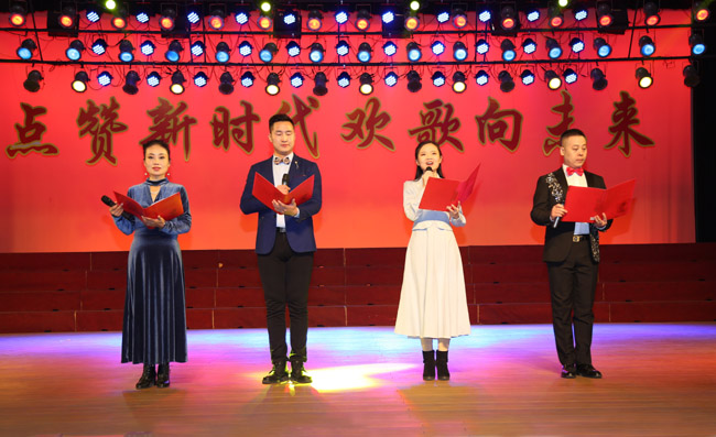 整臺(tái)晚會(huì)內(nèi)容豐富,精彩紛呈,歌曲、舞蹈、小品、配樂(lè)詩(shī)朗誦、相聲、小品等一個(gè)個(gè)節(jié)目銜接緊湊,燈光、音響配合完美,精彩的演出贏得了現(xiàn)場(chǎng)觀眾的陣陣掌聲。特別是由發(fā)電公司員工邵飛、雷鳴鐘編演的小品《懶漢脫貧》生動(dòng)的描寫(xiě)了在幫扶隊(duì)員的關(guān)懷下,懶漢認(rèn)識(shí)到自己擁有一個(gè)幸福溫暖的大家庭,從而鼓起斗志、燃起希望、力爭(zhēng)脫貧的故事;由李春聲創(chuàng)作,路建政、王菀葳、王明閣、鄭坤等表演的詩(shī)朗誦《譜寫(xiě)時(shí)代新篇章》,描述了改革開(kāi)放40年萬(wàn)基控股集團(tuán)從無(wú)到有,掀開(kāi)了新時(shí)代的篇章,給我們創(chuàng)造了幸福生活。由萬(wàn)基鋁加工員工鄭坤、趙博演繹的相聲《說(shuō)學(xué)逗唱》妙語(yǔ)連珠,引發(fā)了現(xiàn)場(chǎng)觀眾的陣陣掌聲,將晚會(huì)現(xiàn)場(chǎng)氣氛推向了高潮。最后,晚會(huì)在大型舞蹈《贊贊新時(shí)代》中圓滿結(jié)束。公司領(lǐng)導(dǎo)上臺(tái)與參演人員一一握手,并合影留念。