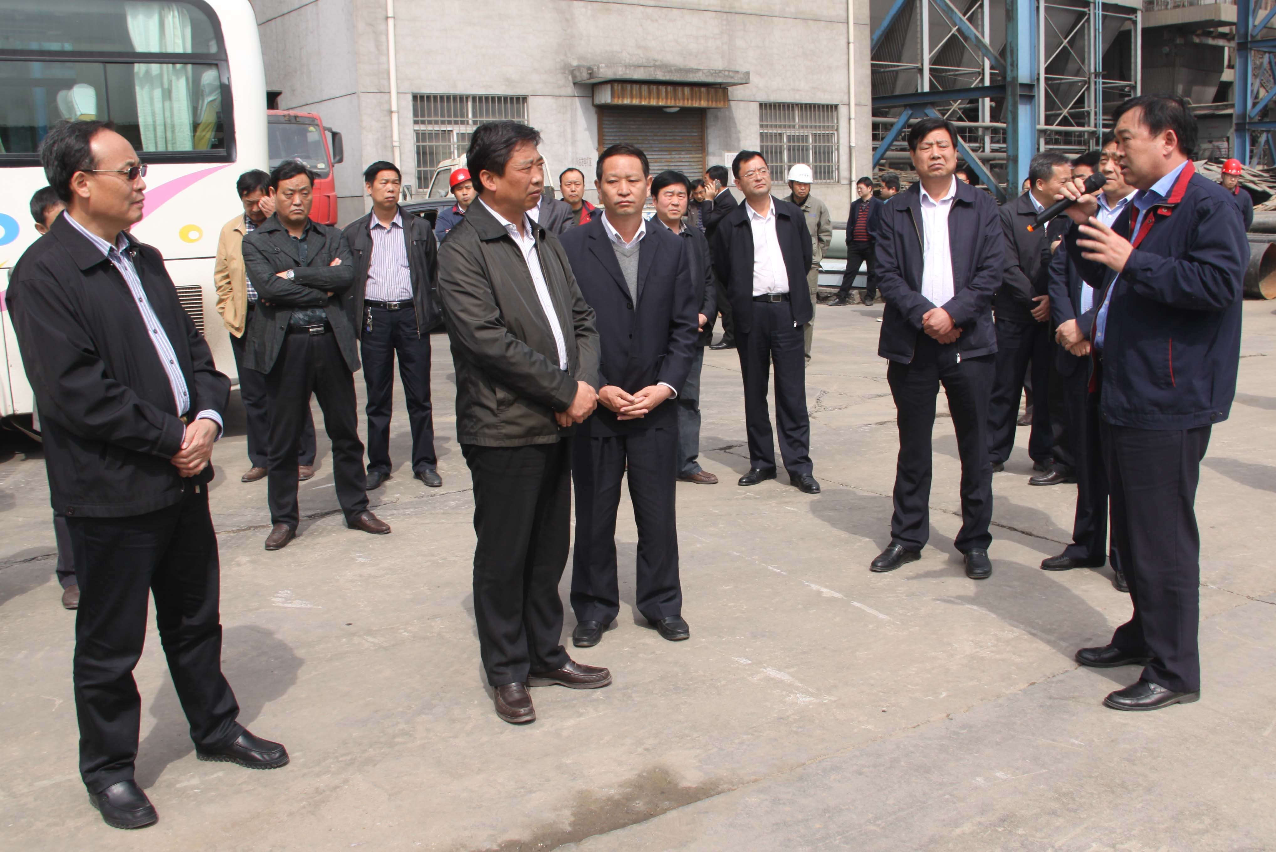 4月17日上午,洛陽市委常委、市紀(jì)委書記王建民(前排左二)、副市長張世敏(前排左一)一行到我公司中水回用工程施工現(xiàn)場調(diào)研項目進展情況。新安縣縣委書記王玉峰、產(chǎn)業(yè)集聚區(qū)管委會主任牛志偉陪同,集團公司總經(jīng)理郭峰(前排右一)向各位領(lǐng)導(dǎo)匯報了項目建設(shè)情況。