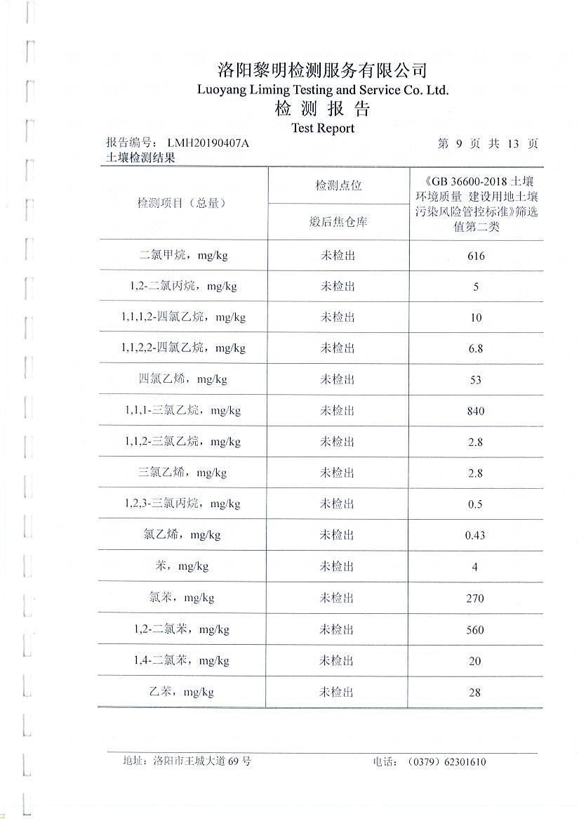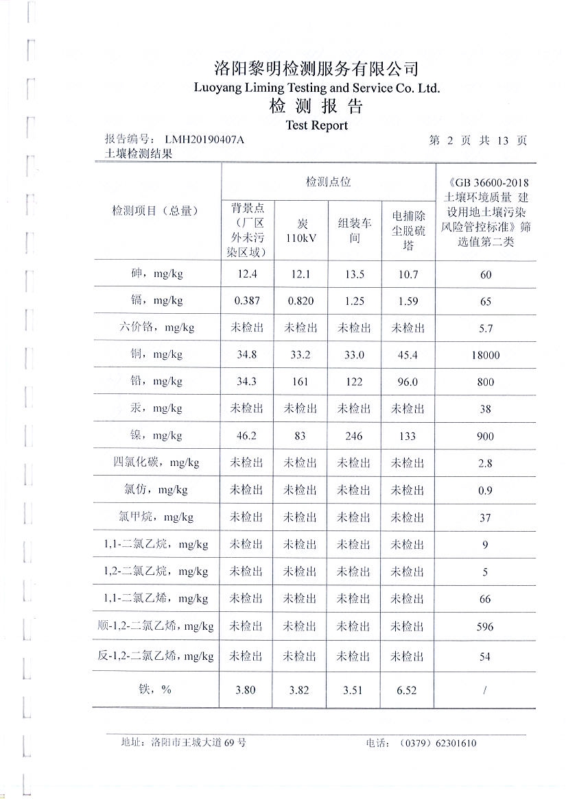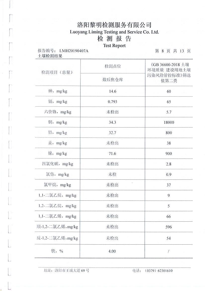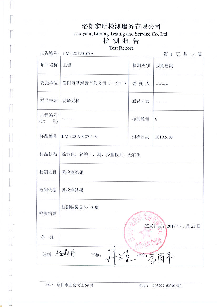 河南萬基炭素有限公司(一分廠)土壤檢測報(bào)告公示