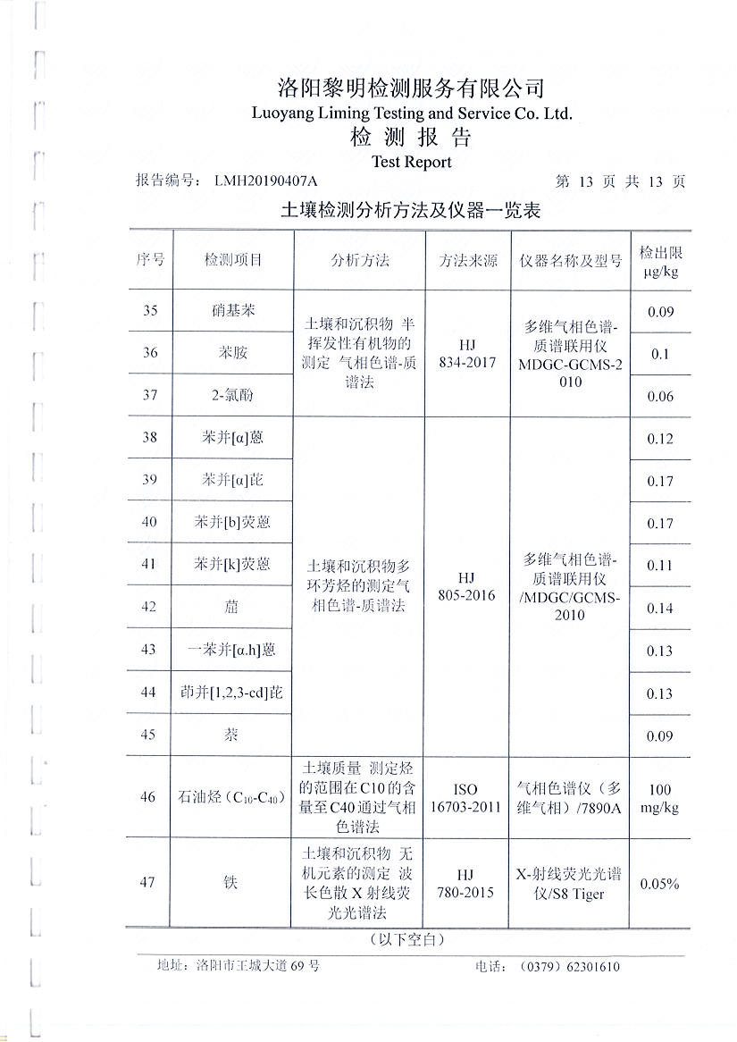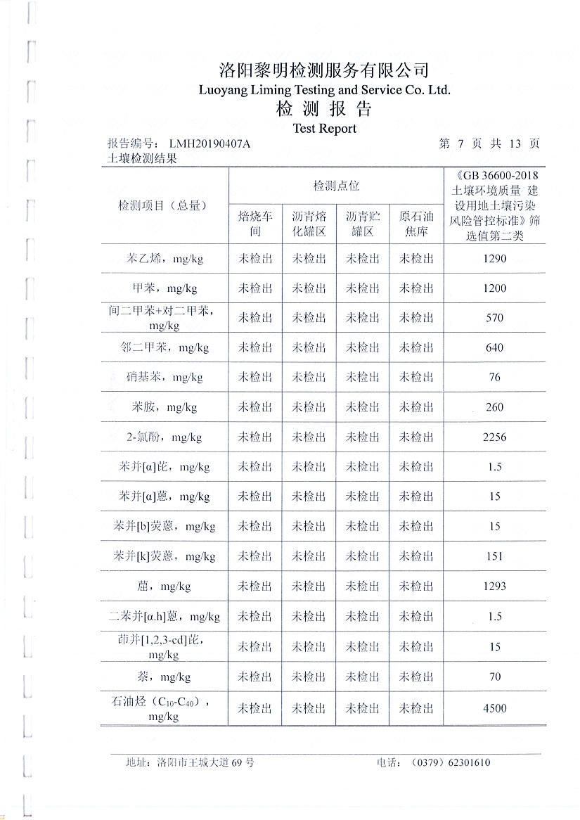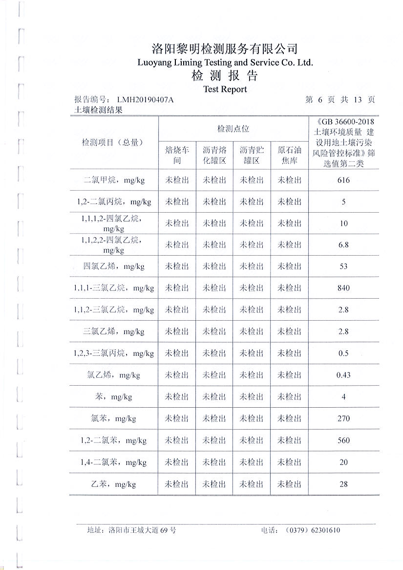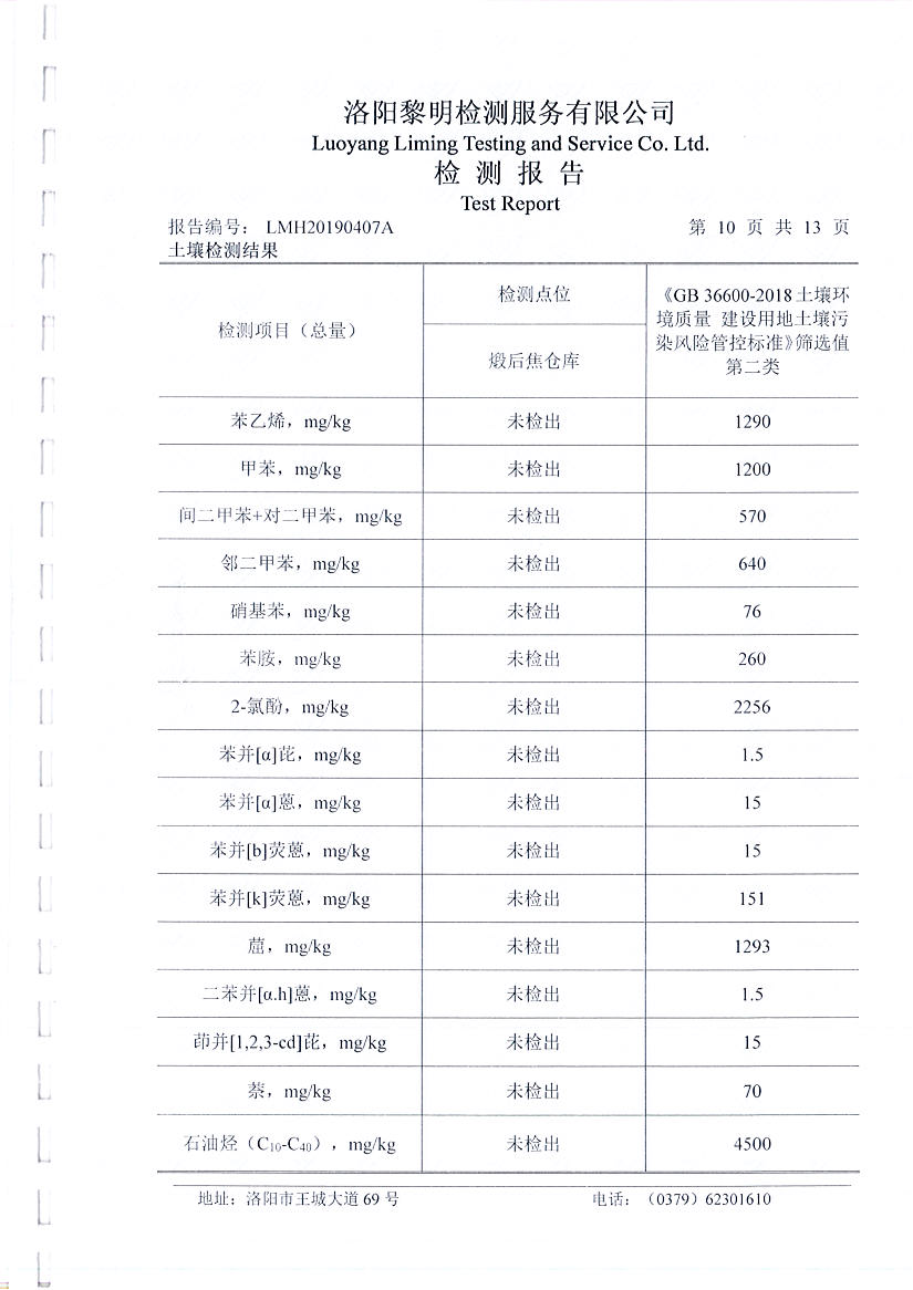 河南萬基炭素有限公司(一分廠)土壤檢測報(bào)告公示