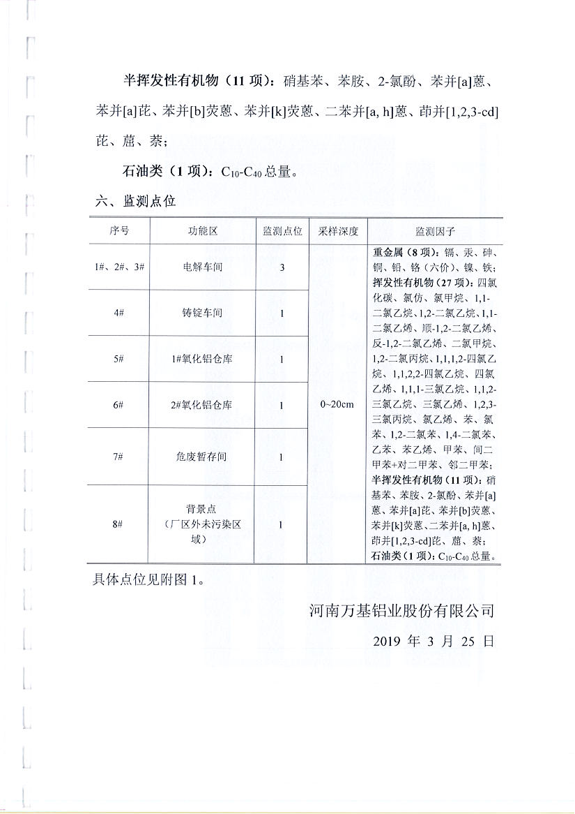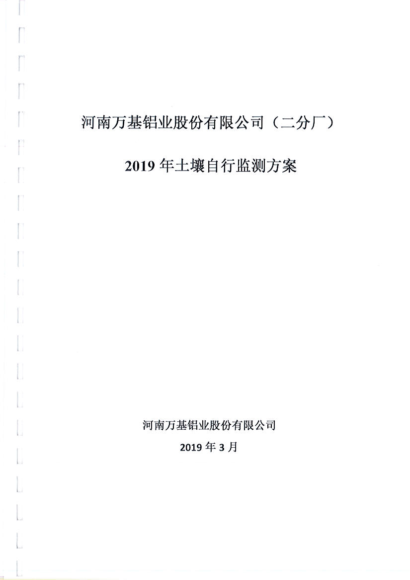 河南萬基鋁業(yè)股份有限公司(二分廠)2019土壤自行檢測(cè)方案