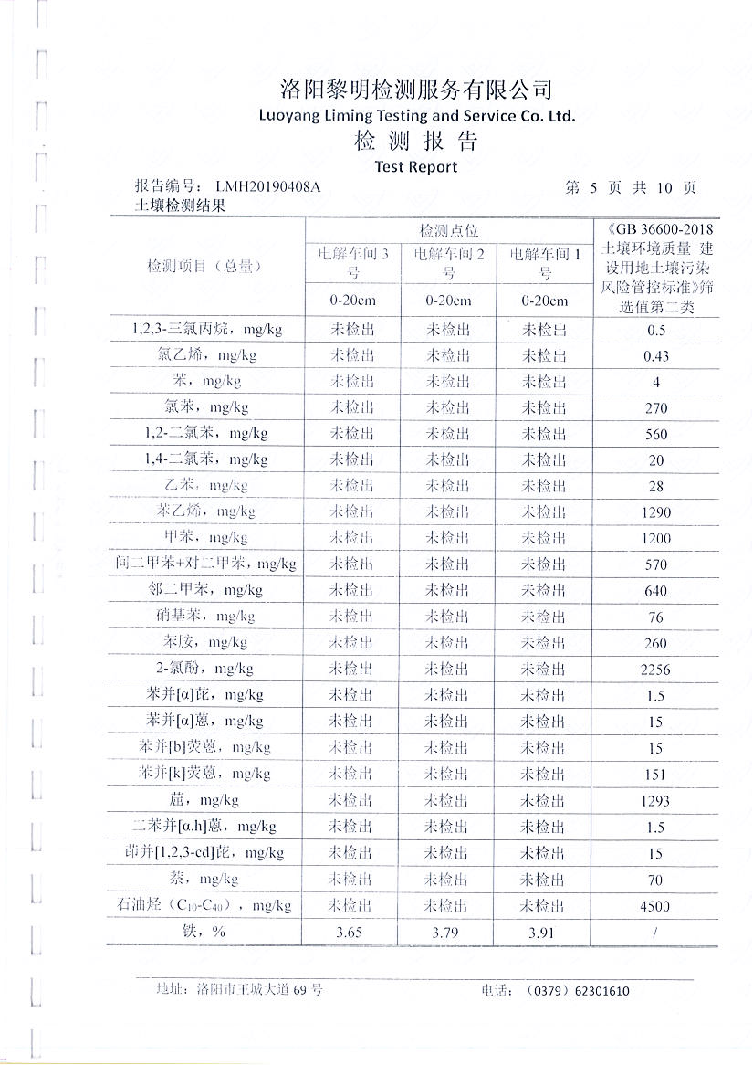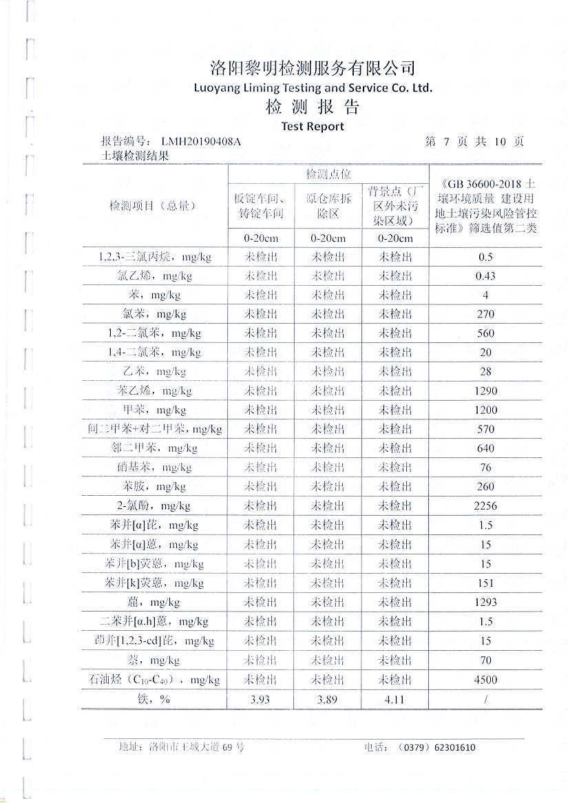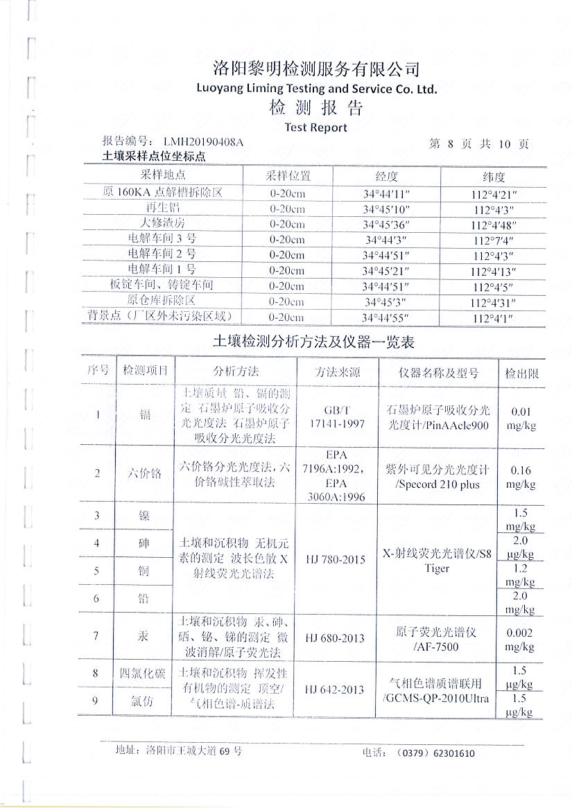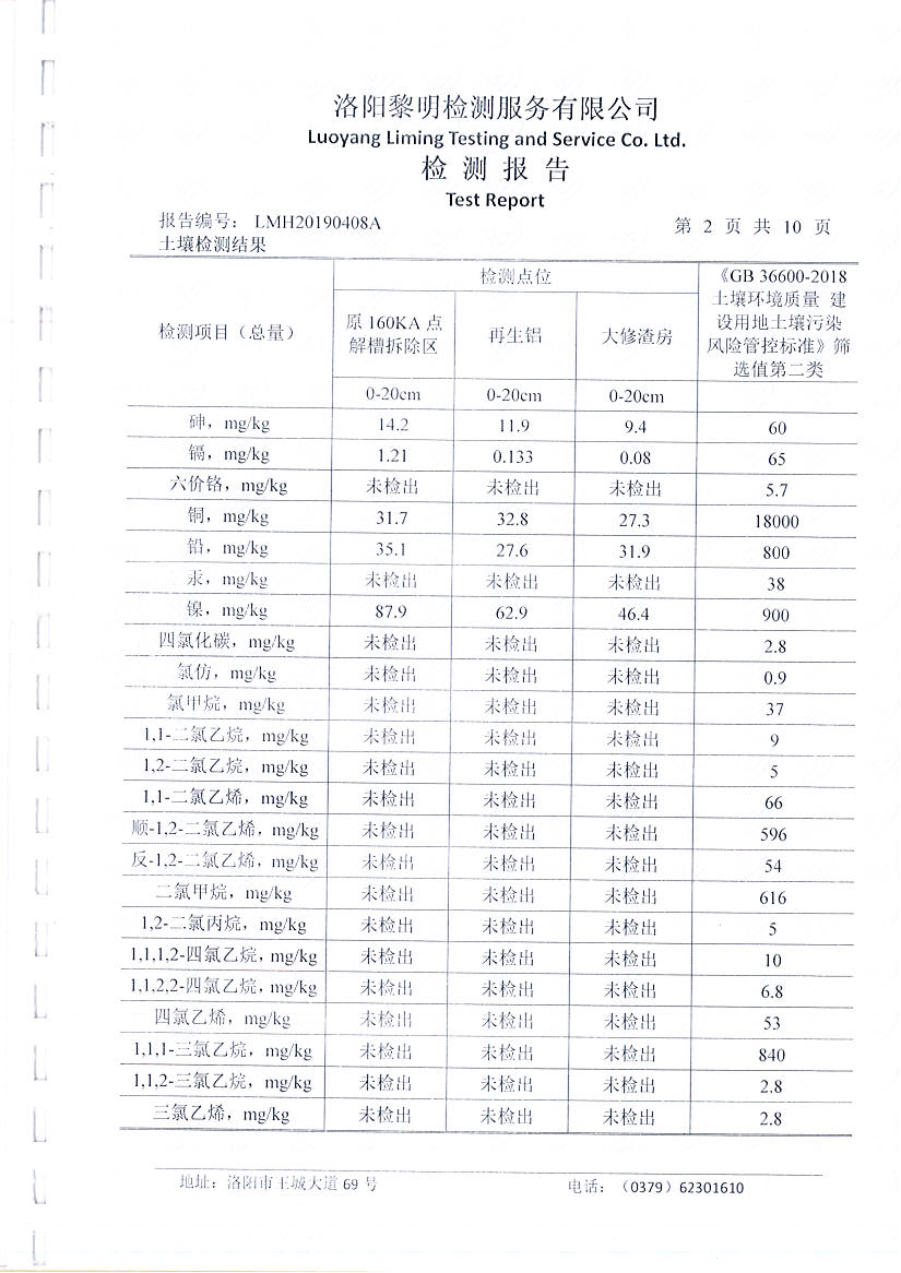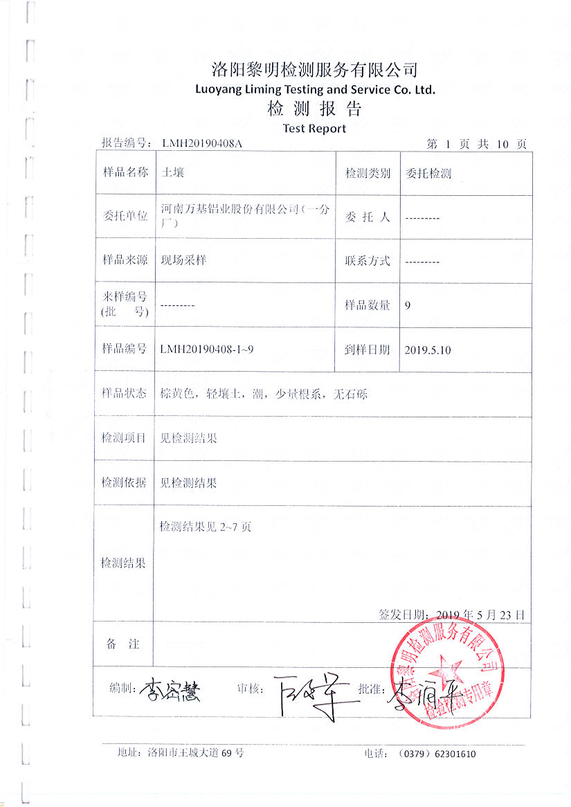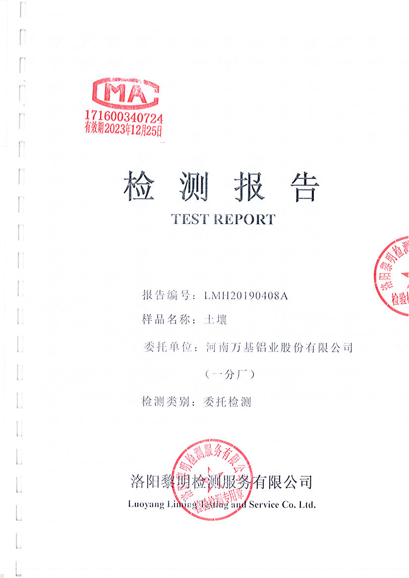 河南萬(wàn)基鋁業(yè)股份有限公司(一分廠)土壤檢測(cè)報(bào)告公示