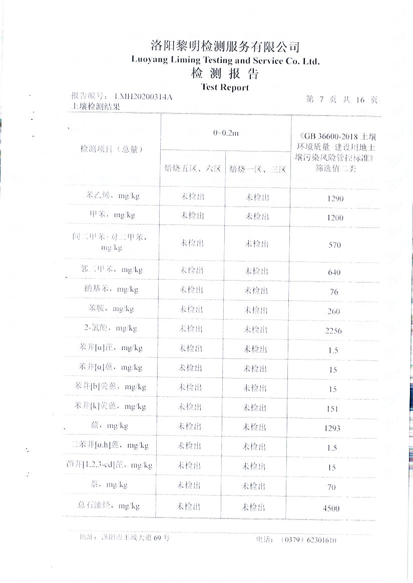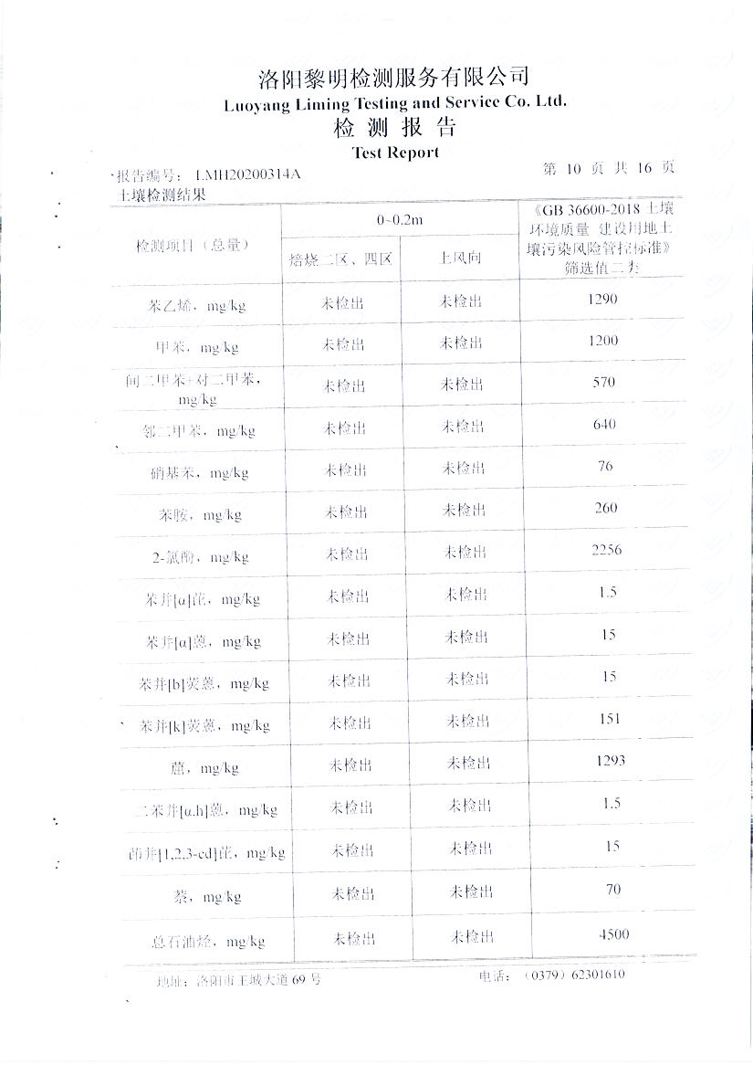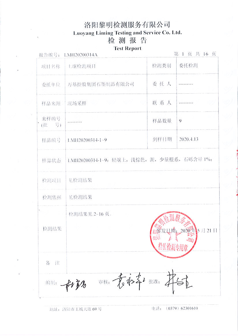 萬(wàn)基控股集團(tuán)石墨制品有限公司2020土壤自行檢測(cè)報(bào)告