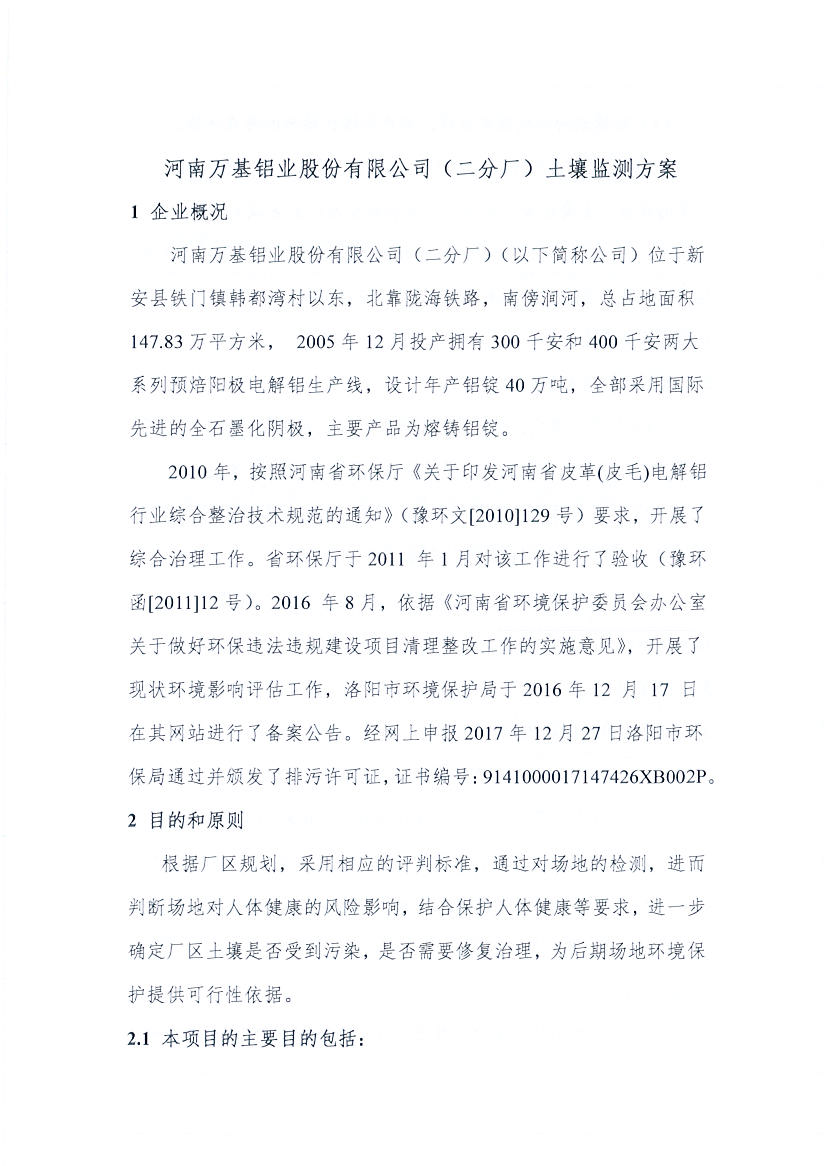 河南萬基鋁業(yè)股份有限公司(二分廠)2020土壤自行監(jiān)測方案