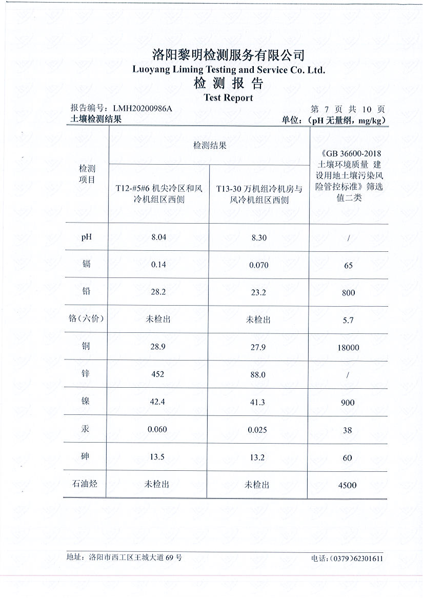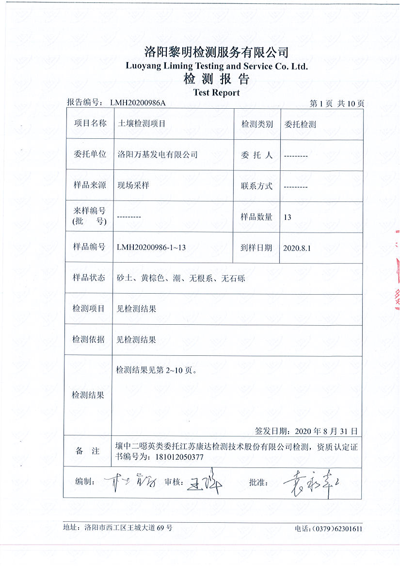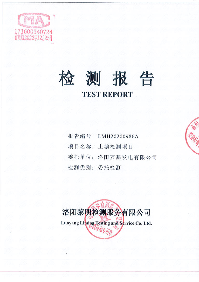洛陽萬基發(fā)電土壤檢測報告