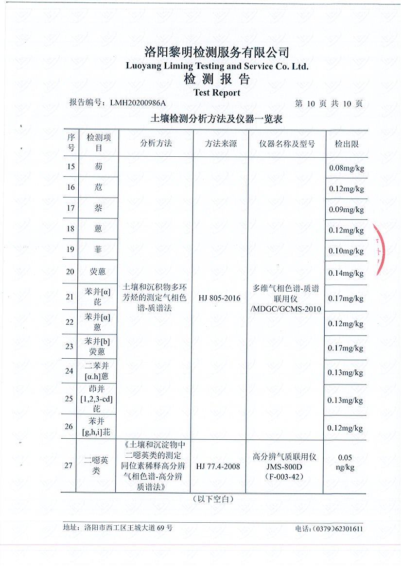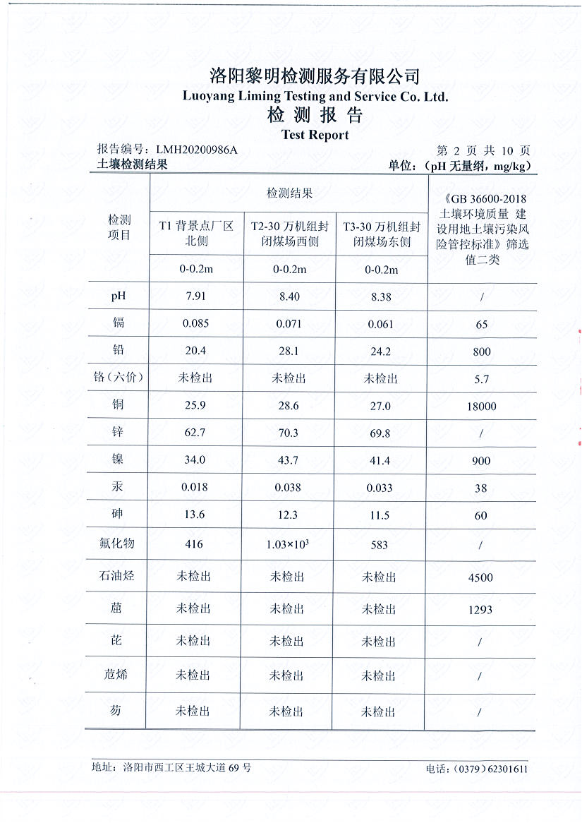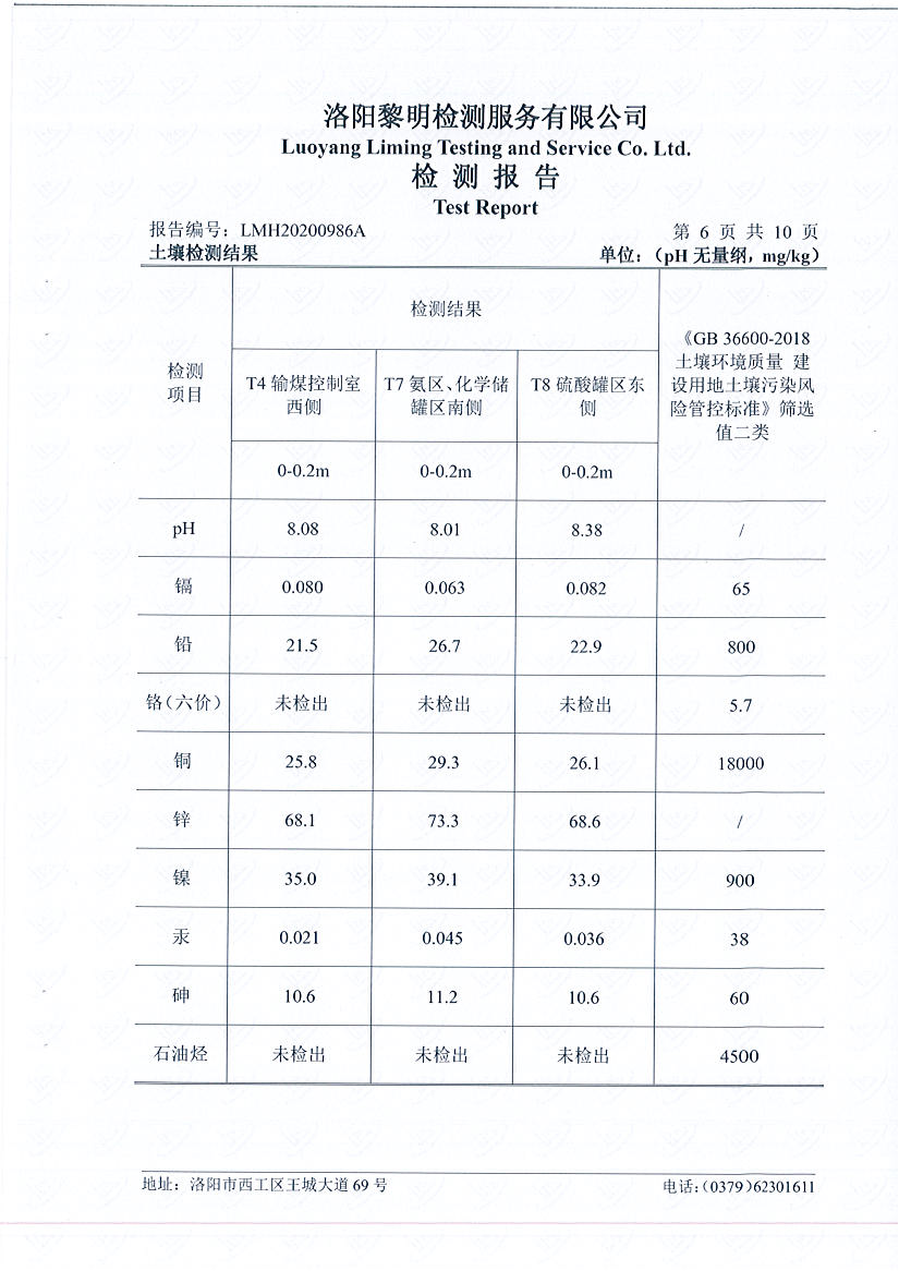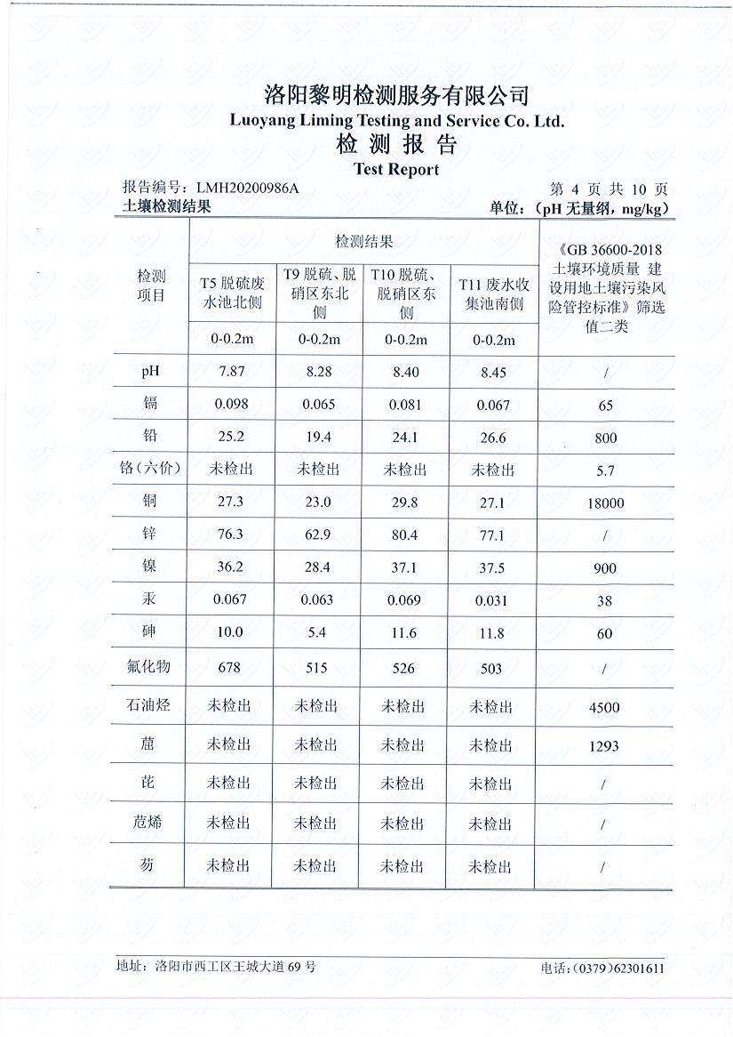 洛陽萬基發(fā)電土壤檢測報告